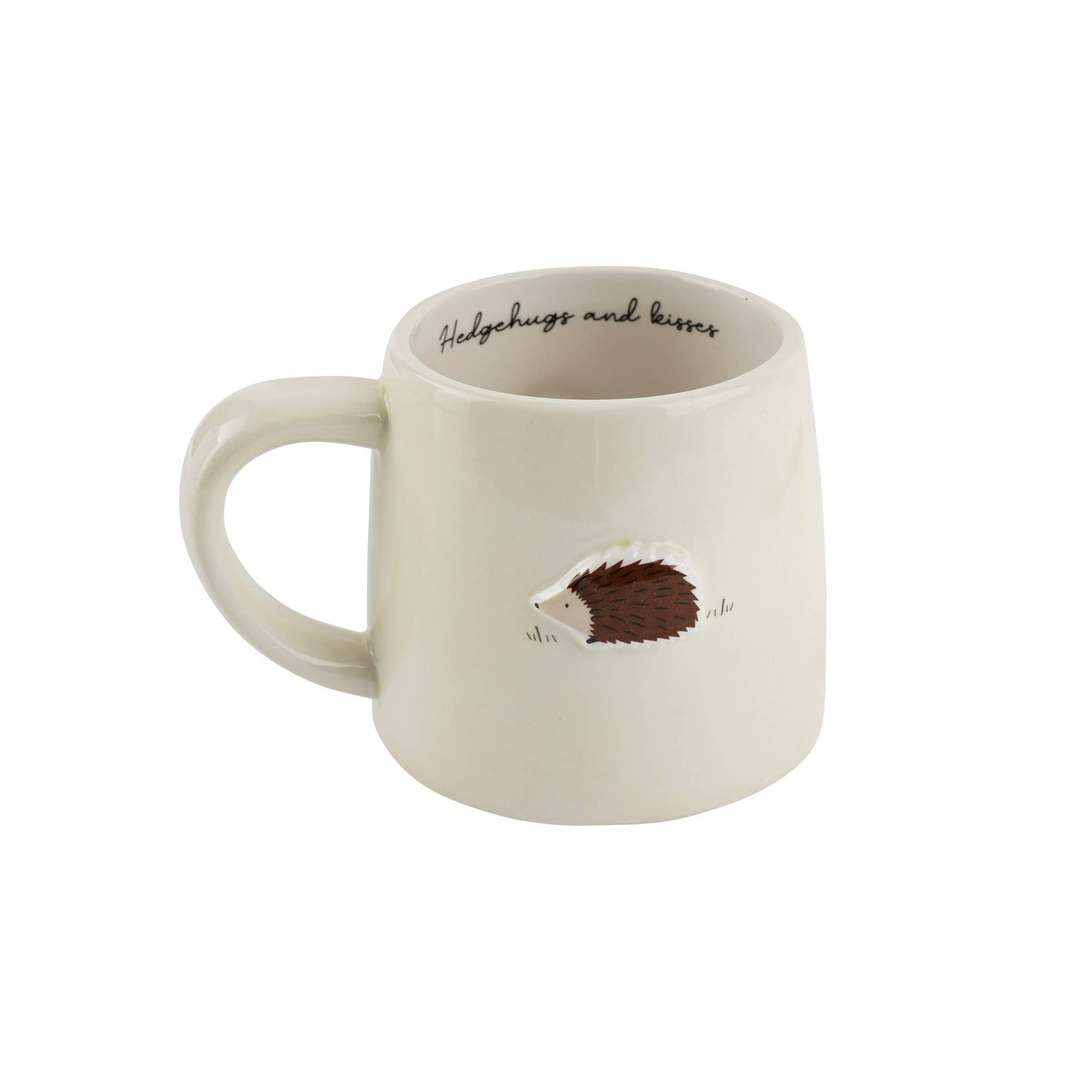 Add a touch of woodland charm to your daily brew with this delightful ceramic mug featuring an embossed hedgehog design. The raised detailing gives the hedgehog a sweet, hand-crafted feel, while the smooth glaze makes it a pleasure to hold and sip from. Hidden inside the mug is a heartwarming surprise—the slogan “Hedgehugs and Kisses” is printed on the inner rim, bringing a smile with every sip of tea, coffee, or hot chocolate.