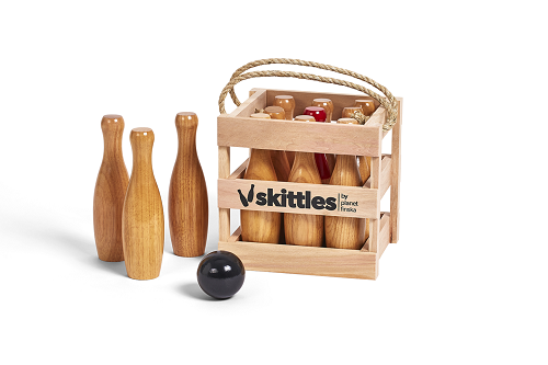 This handy crate of classic timber skittles will bring hours of fun to young and old.